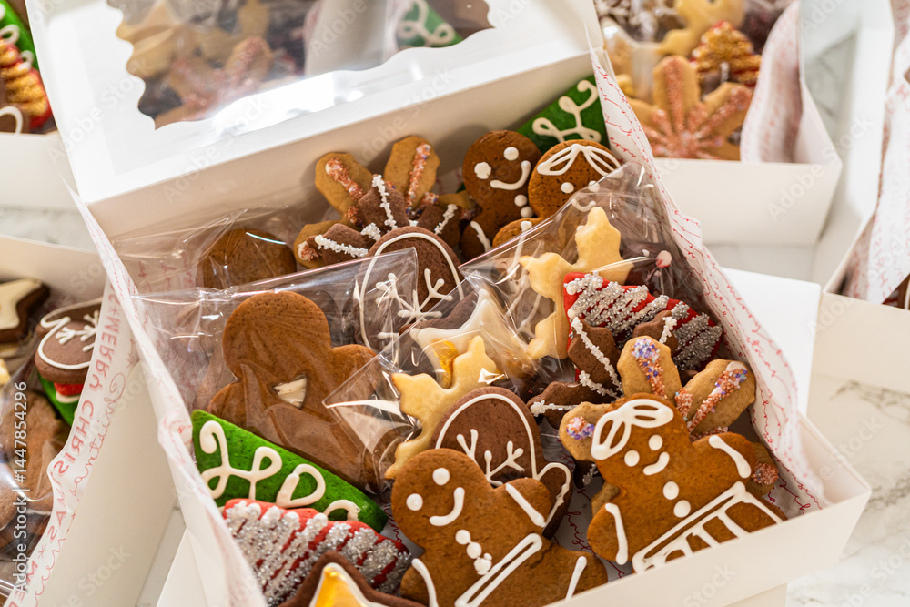 Open Holiday Cookie Gift Box with Festive Gingerbread Assortment