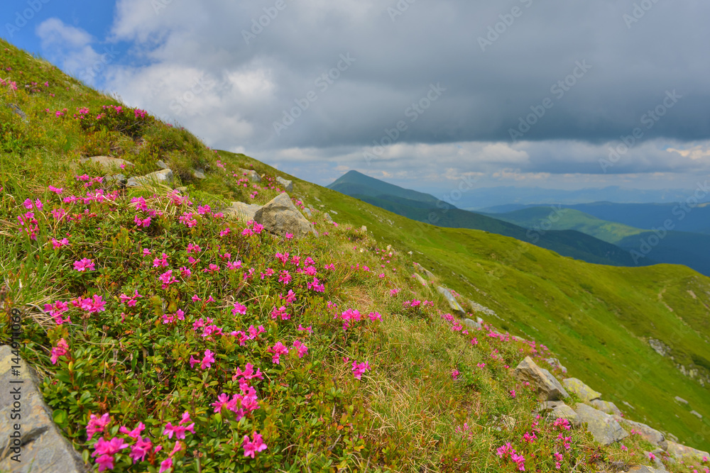 Rhododendron in summer mountains