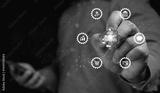 A man interacts with a virtual screen displaying "Import Tariffs" surrounded by business-related icons.