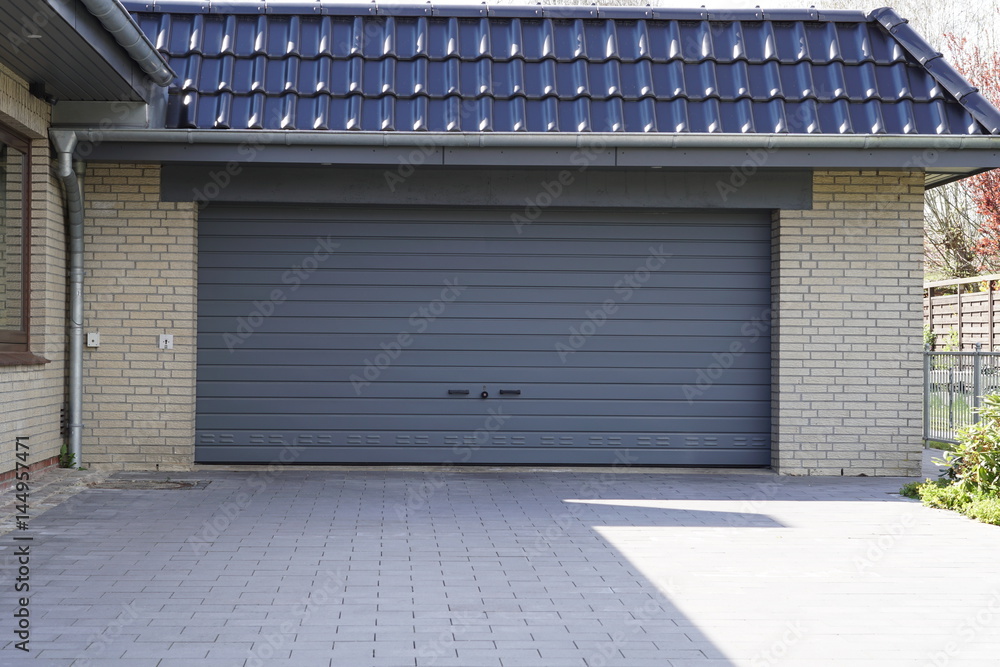 Garage mit grauem Doppeltor