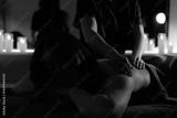 Relaxing massage for young asian women in tranquil spa setting with light of candles