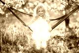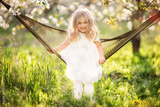 Happy child girl relaxing in hammock