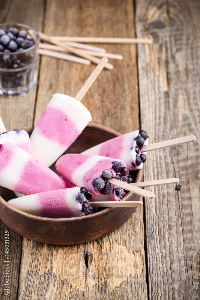 Berry yogurt ice pops with frozen blackcurrant