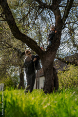 Mom and daughter playing and climbing trees as fun activities