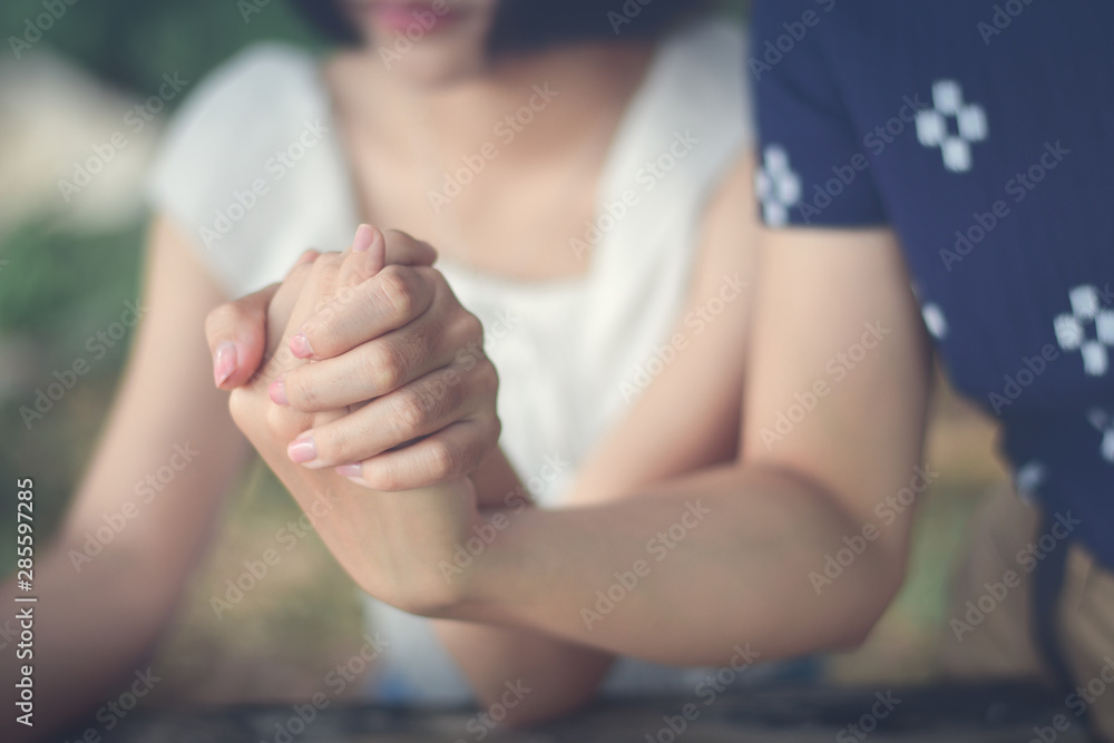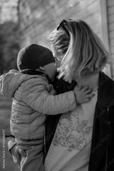 Mother hugging her baby boy son caring with love and care outdoors as family together