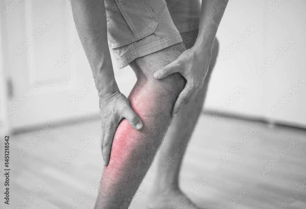 Pain in the knee caused by bruising or injuring, isolated red highlights