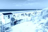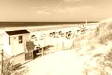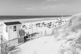 RANTUM BEACH, SYLT ISLAND - SEP 8, 2016: view of white sand beach with people sunbathing in wicker chairs on southern coast of Sylt island, Germany.