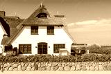 Typical Frisian house in Hornum village on southern coast of Sylt island, Germany