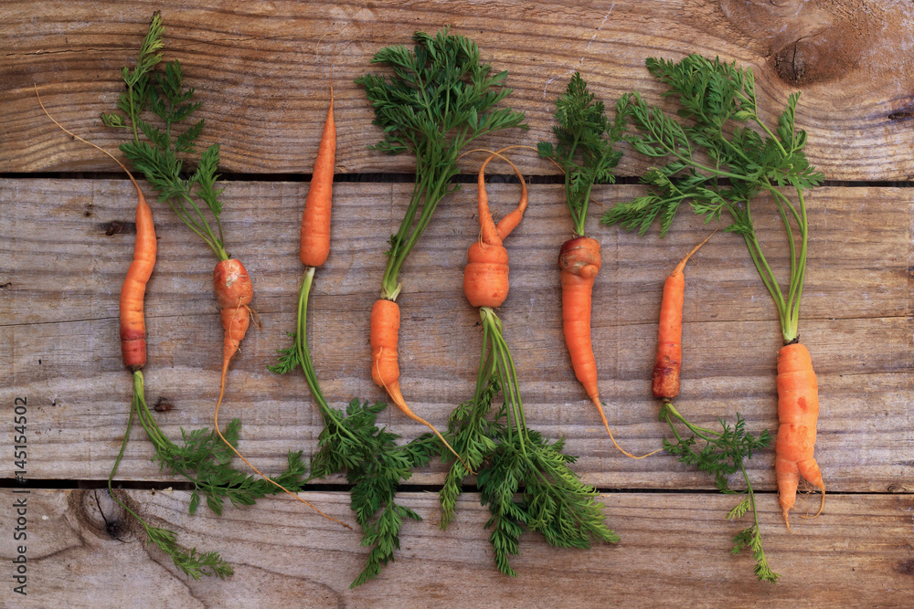 Carrots on a wooden table with old boards