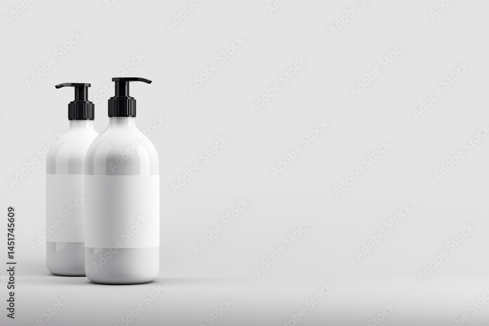 Blank pump bottle mockup with clean label design on light background for branding and product presentation template concept. 3D Rendering