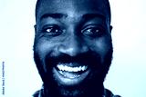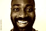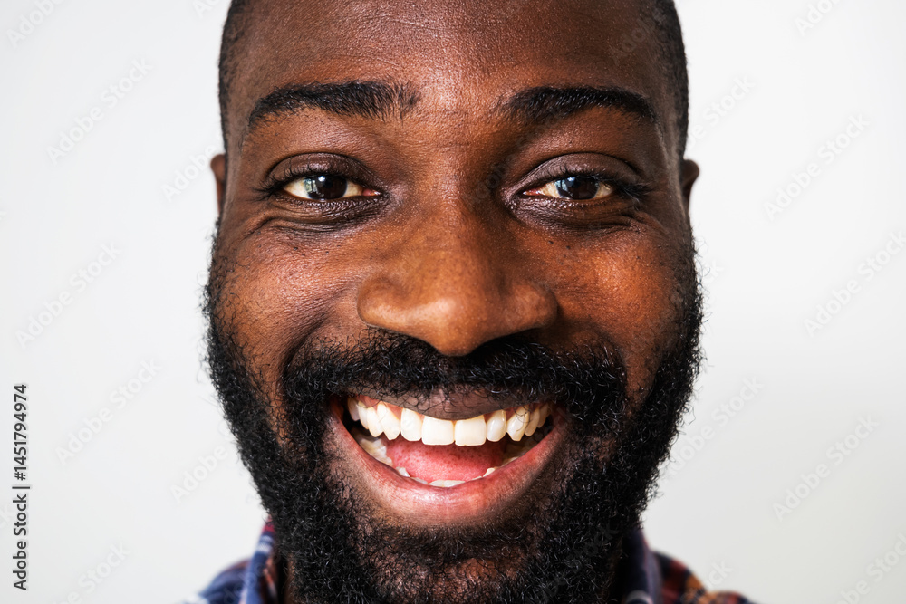 Close up portrait of happy and cheerful black man. Adult man is laughing.