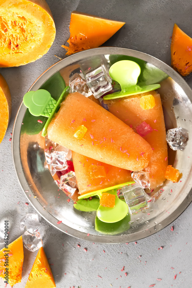 Homemade orange ice cream on a stick