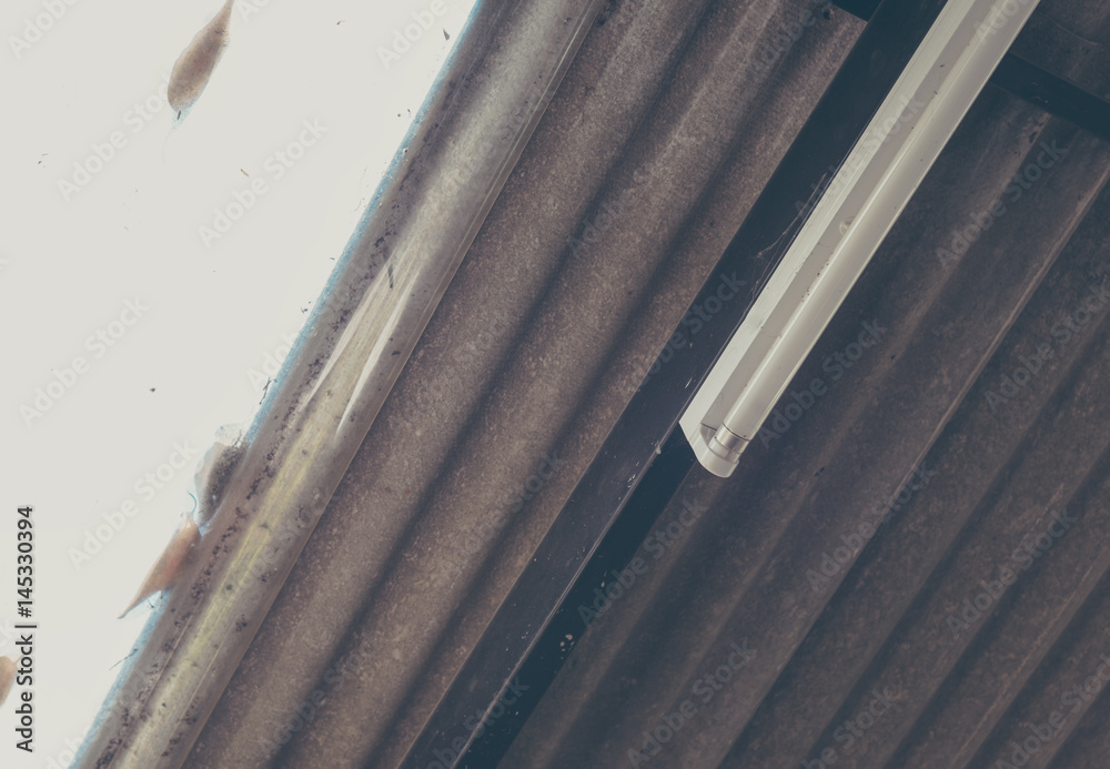 fluorescent lamp and clear roof tile.