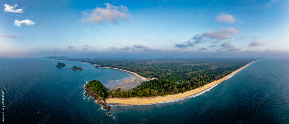 Koh Prathong island panorama, Aerial drone view beautiful coral reefs and white sand beach, Phang Nga, Thailand