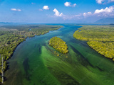 Aerial top down view of Koh Prathong Island, Thailand mangrove forest background texture