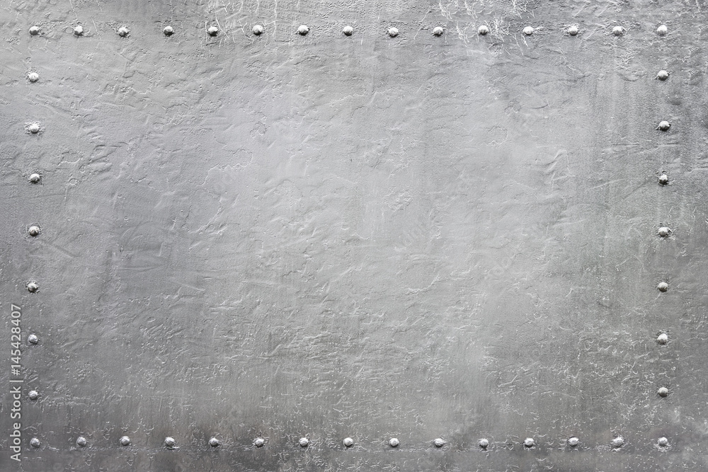 Riveted military or industrial plate. Metal background.