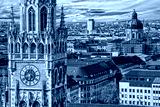 Munich architectural sunset view, Germany, Bavaria. Marienplatz town hall