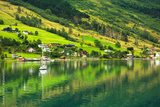 Norwegian fjords in sea port Olden, Norway.