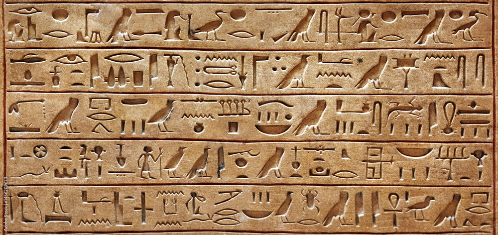 Old Egyptian hieroglyphs on an ancient background. Wide historical and culture background. Ancient Egyptian hieroglyphs as a symbol of the history of the Earth.