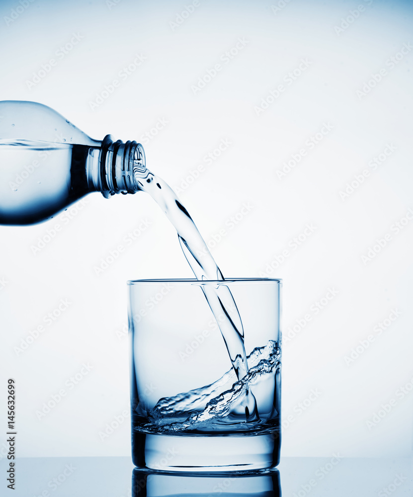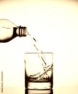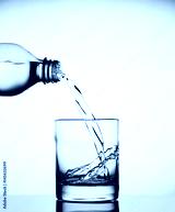 Water pouring into a wide glass from a bottle
