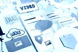 Mobile services. Concept for website and mobile banner, social media marketing, internet advertising, networking, m-commerce, presentation template, marketing material, mobile apps and services.