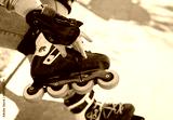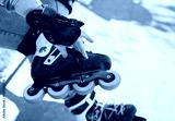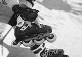 Roller girl unscrewing wheels on freeskate roller Skates with Allen key or Hex key tool. Maintenance of professional skates