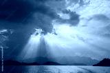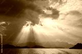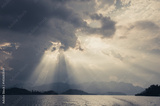 Beautiful sun rays through the clouds over mountains,evening light,Amazing scene at Khao-Sok National Park of Thailand