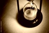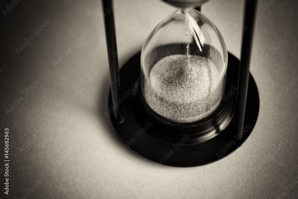 Large black hourglass against a blue background