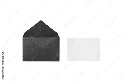 An opened black envelope and a white message card