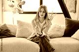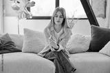 Sad teenage girl 17-18 years old sitting at home on the couch