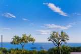 Scenic view of two trees, sky, sea and Li Galli islands on Amalfi Coast, Italy