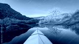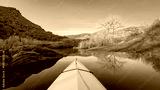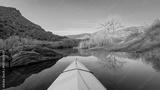spring kayaking or canoeing in a sandstone canyon of the Horsetooth Reservoir near Fort Collins, Colorado - POV paddler perspective