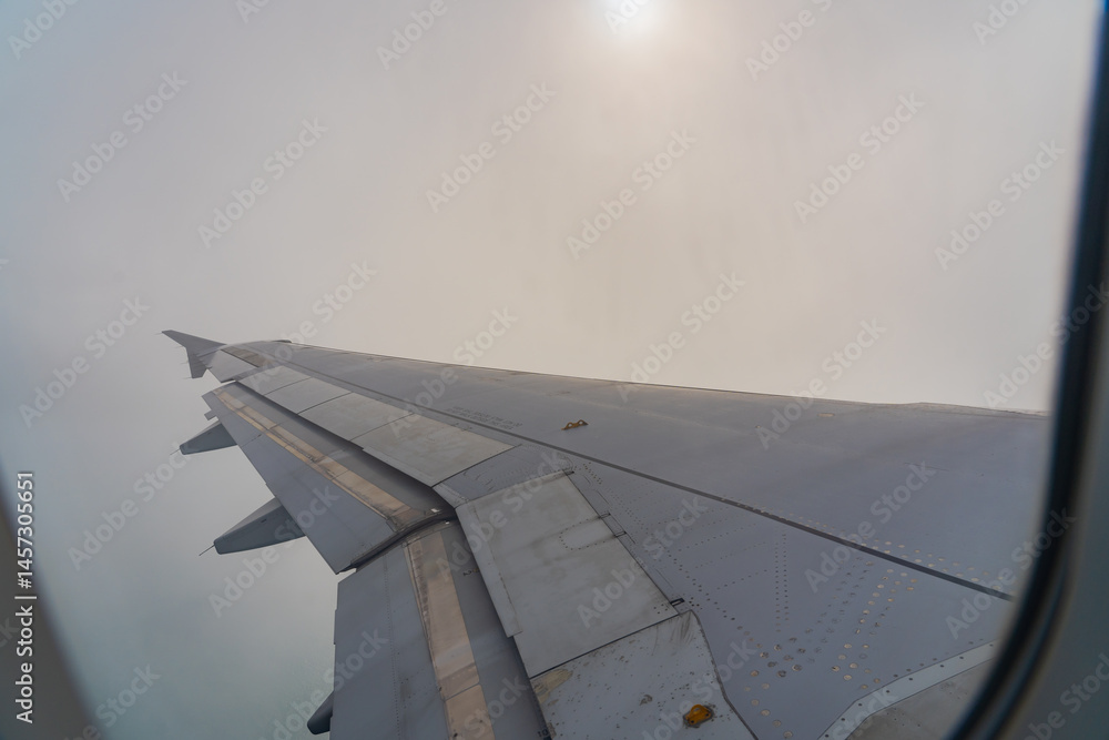 Soaring above the clouds on a misty journey through the endless sky during a calm afternoon flight
