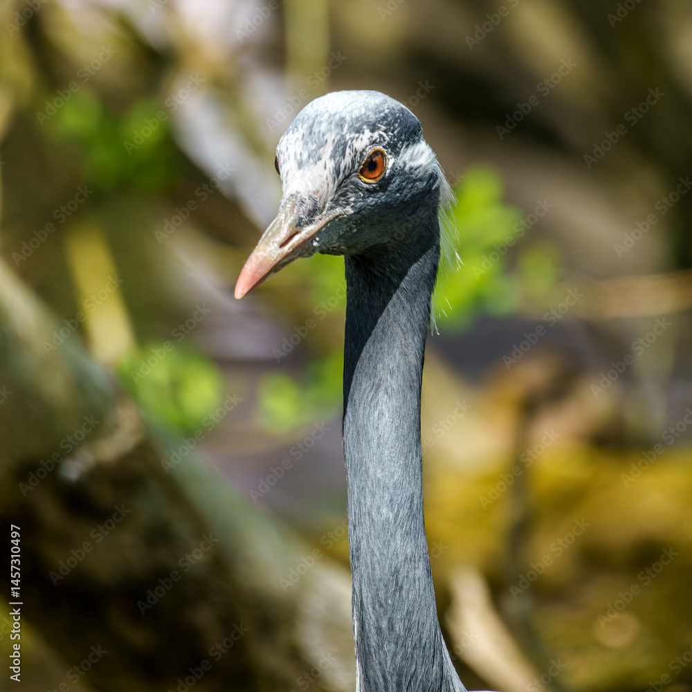 Demoiselle Crane, Anthropoides virgo are living in the bright green meadow during the day time