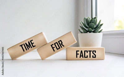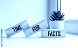 The text "TIME OF FACTS" on wooden blocks on the background of a window with a flower