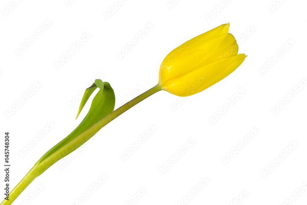 Close up of a yellow tulip - isolated on white background - still photograpy