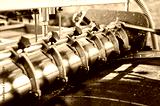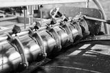Innovative glue-spreading machine rollers in action at a cardboard box manufacturing facility
