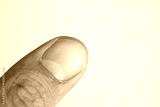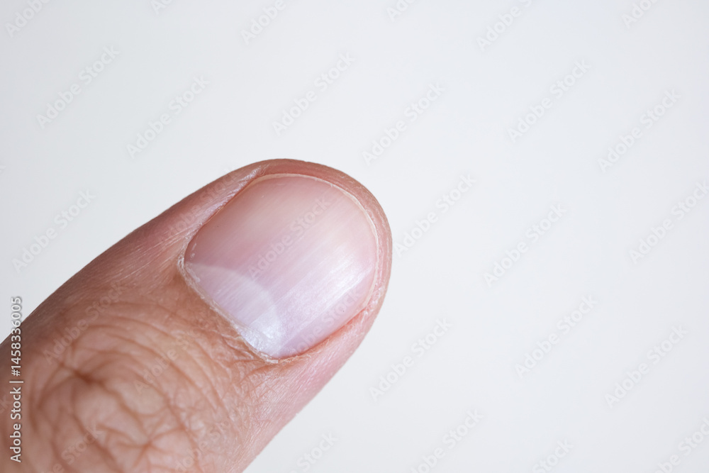 Caucasian male's thumb finger or fingertip. Macro close up shot, isolated on white