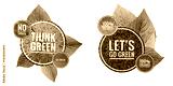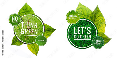 Green logo isolate on white background, environmental concept, Think green and no Plastic logo with natural green leave pattern background