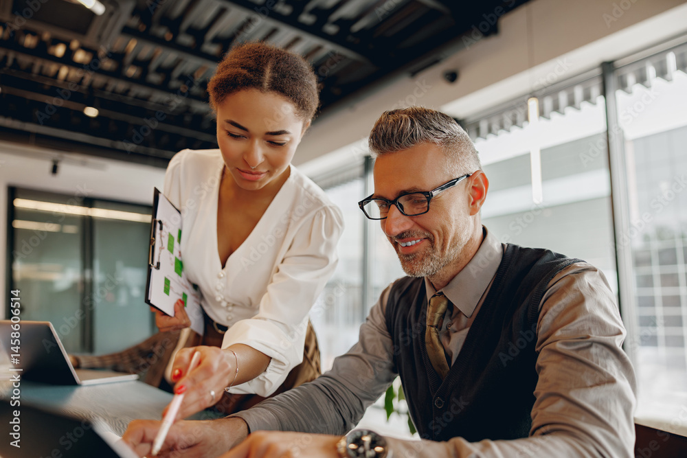 Professionals discuss strategies in a bright, modern workspace, emphasizing the importance of teamwork