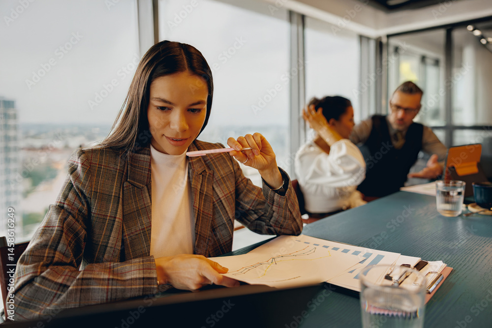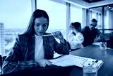 A skilled professional collaborates well with colleagues in a modern, innovative office environment