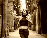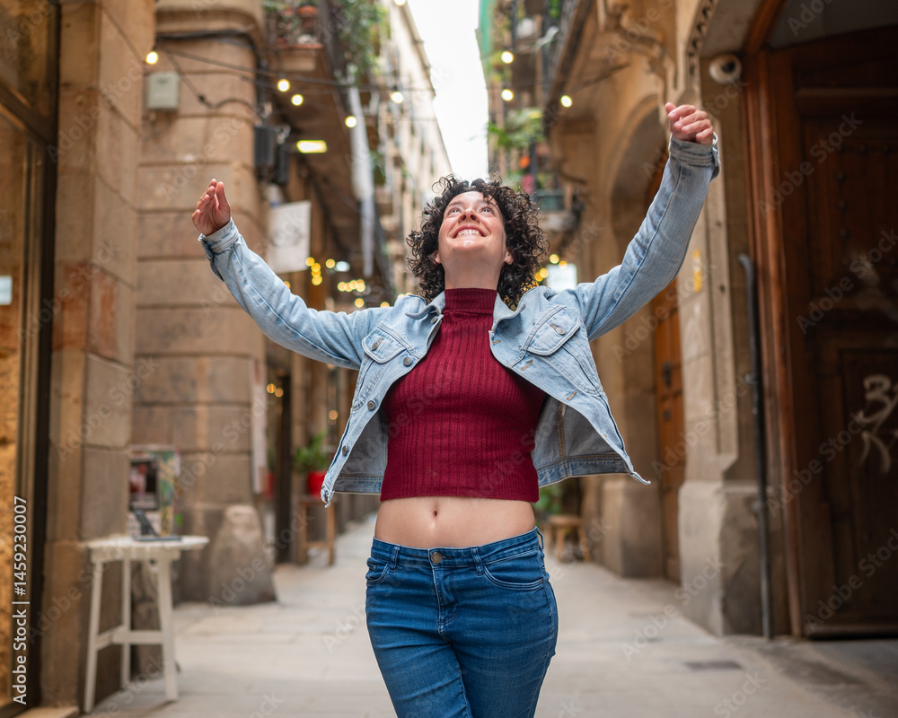 Young tourist feeling free while walking in Barcelona city center