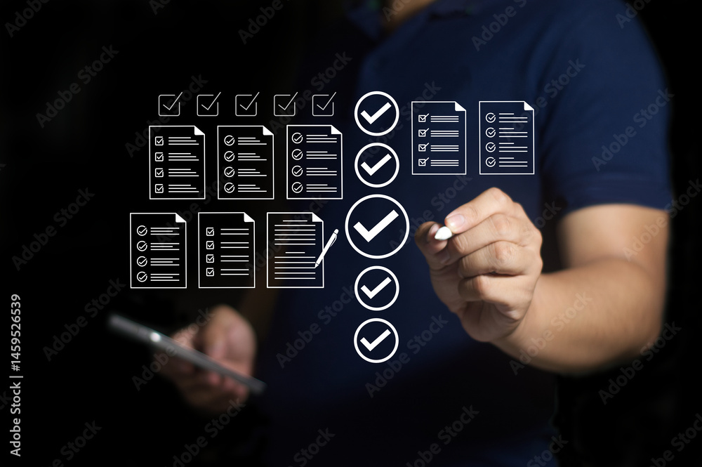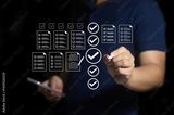 DSC_0676.3 a man answers and fills out a survey questionnaire online form, an online assessment and survey, exams, or quizzes. digital evaluation and data collection, electronic feedback data concept