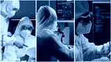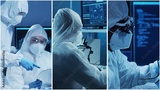 Technology and medical concept. Scientists, lab equipment and microscopes in biomedical innovations and clinical studies. Ideal for educational content. Vertical videos.
