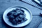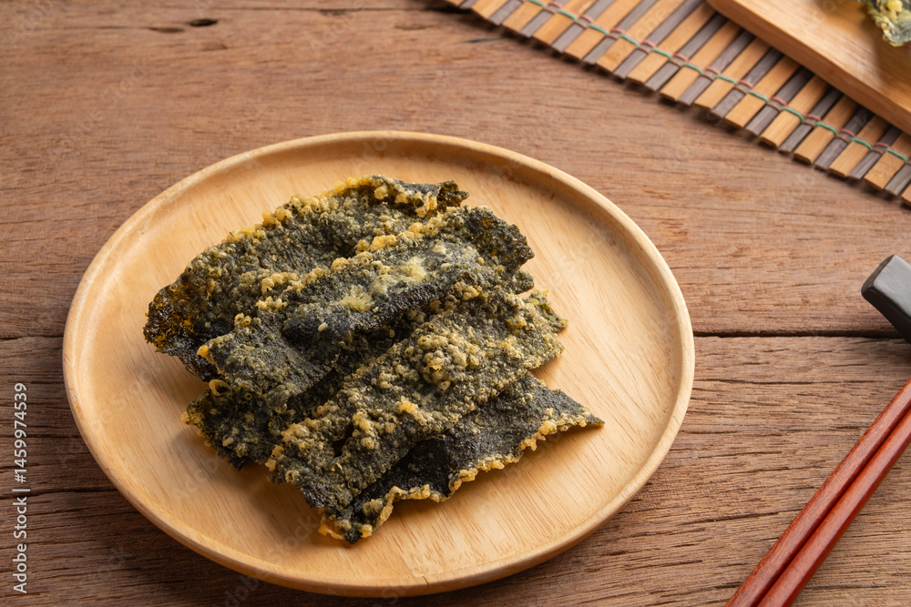 Deep fried Crispy Seaweed with flour and egg.Snack seaweed tempura chips in white plate.