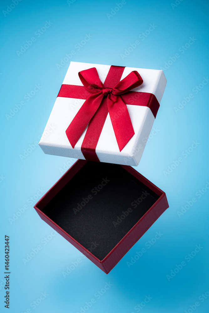 開いたギフトボックスと水色の背景