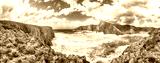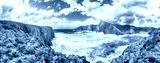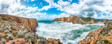Attractive view of cliffs in valley Cala Domestica and storm on the sea