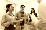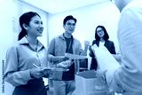 Team members collaborate in an office setting during a business meeting to discuss project ideas and plans