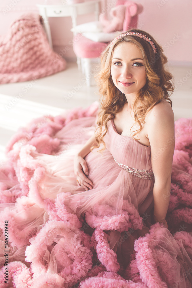 Pregnant pretty girl is wearing fashion pink dress