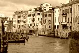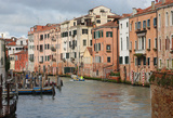 waterway with more moored boats and houses in Venice Island in Northern Italy